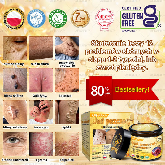 ΑPΚΑPK™ Jad Pszczoły Kompleksowy Krem🥇🥇pomaga w leczeniu problemów skórnych, takich jak: zmarszczki, blizny, plamy pigmentacyjne, rozstępy, trądzik, łuszczyca, egzema, zmiany skórne, podrażnienia, stany zapalne i inne problemy skórne🔥🔥🔥